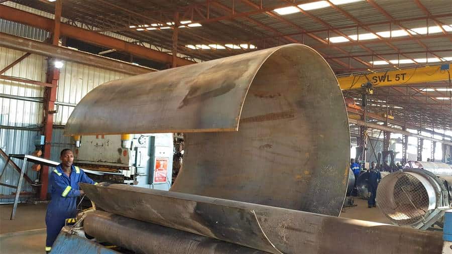 Plate work at Brown Engineering Group is broken into heavy and light plate work. Our plate department has several bend brakes, presses and guillotines capable of bending up to 10mm plate. The plate section has a 12m plasma bed capable of cutting up to 25mm plate. This section also has sets of mechanical and hydraulic pinch rolls for rolling operations. This department undertakes the bulk of work for producing boiler, pipelines, fuel tanks as well as general tank and sump work for the mining industry.